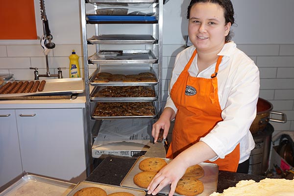 Daphne Peterson prepares dessert bread for sale during her ESTR practicum at Gold Leaf Pastries.